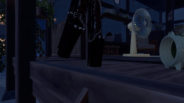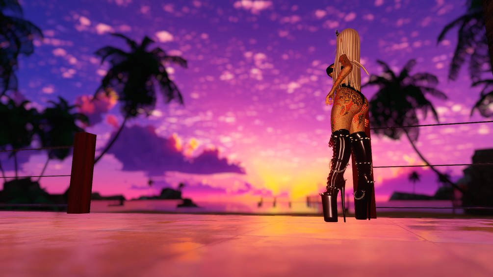 Bodysuit, Fishnet Bodysuit, curly hair, straight hair, death's strike heels, down for a ride heels, power up heels, fans, horns, tail, gloves, and choker