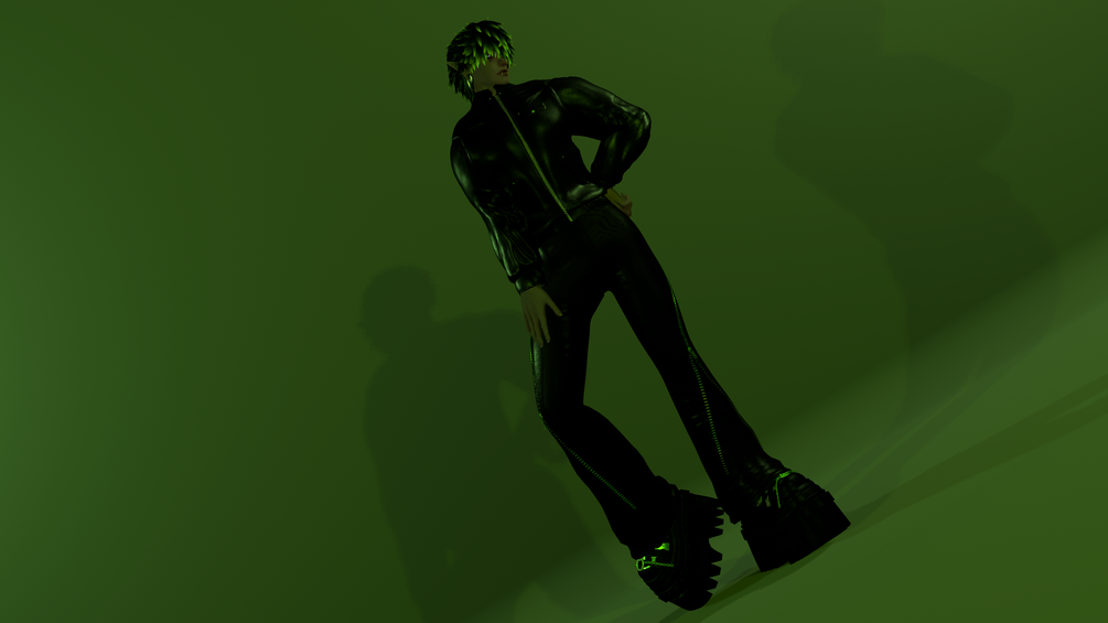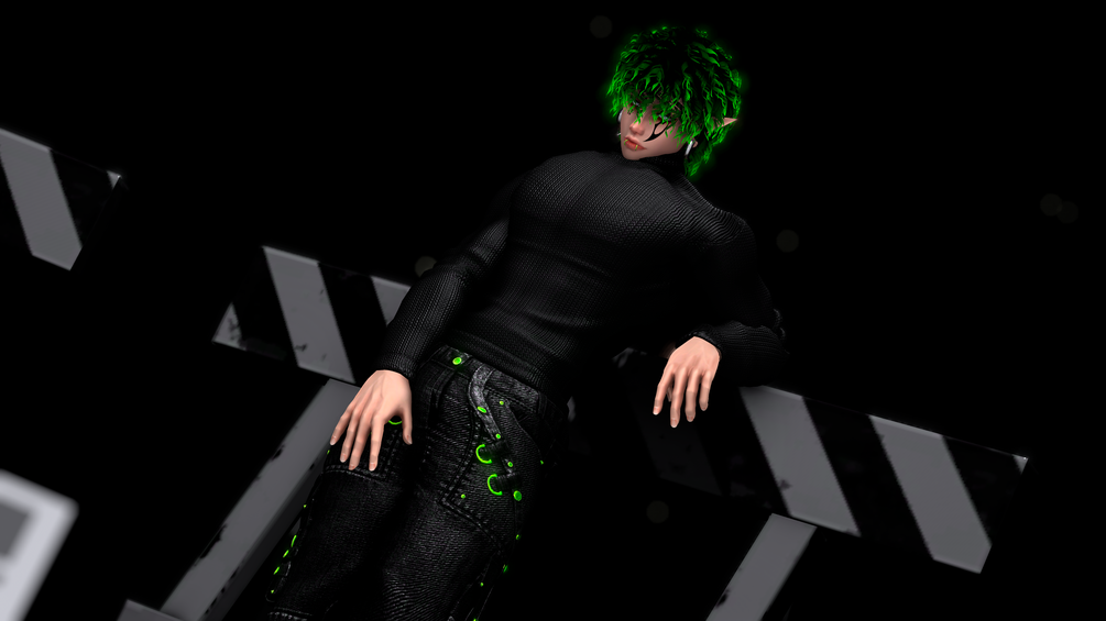 Sweater, cropped sweater, tank top, jacket, pants, zipper pants, tail, long hair, long curly hair, shaggy hair, short curly hair, short bangs, messy hair, boots, platform boots, shoes, nip piercings, gauges, necklace and "extra attachments"